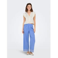 ONLY Dame Bukser ONLPAULA – Blue Bonnet BRIGHT WHITE EMB.