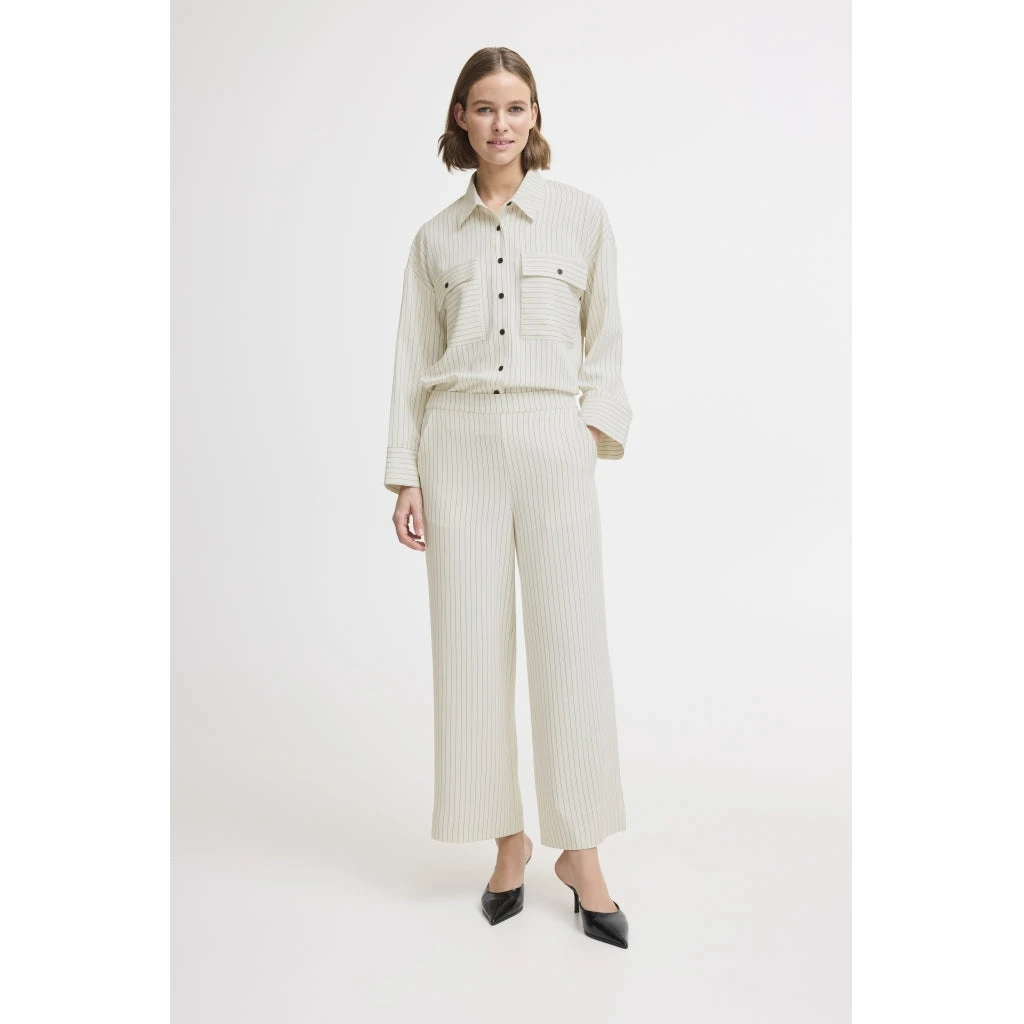 Sejeste stribede bukser fra b.young. Bukserne har lommer bagpå og kan matches med skjorten fra samme serie for et komplet, sejt look. Style dem evt. med slingback stiletter.