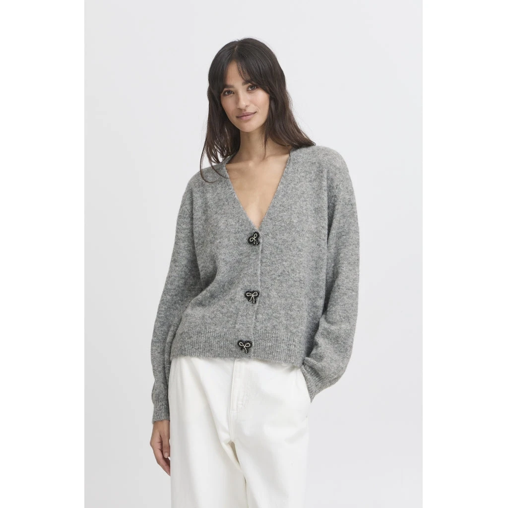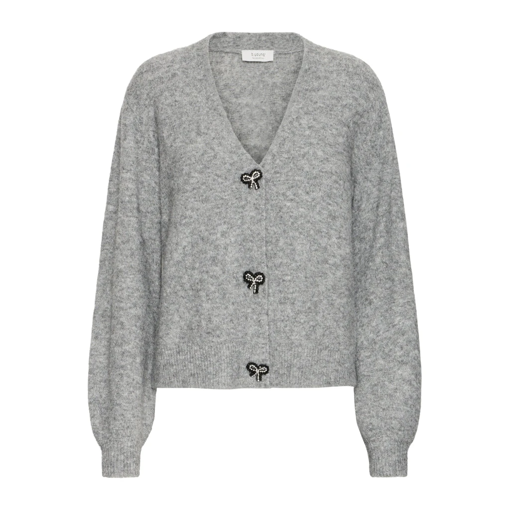 Smuk, feminin cardigan fra b.young med sløjfemotiver. Kan både bruges for sig selv eller med en basis top eller langærmet under på de kolde dage. Style den med jeans eller nederdele og sneakers eller ballerinaer.
