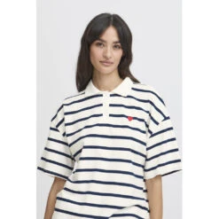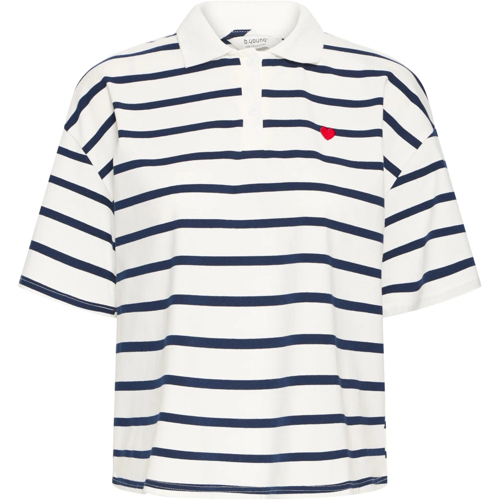 Klassisk polo t-shirt fra B.young. Poloen har en klassisk krave, sofistikerede knapper og et enkelt hjertemotiv. Super cool til jeans og sneakers som et casual hverdagslook.