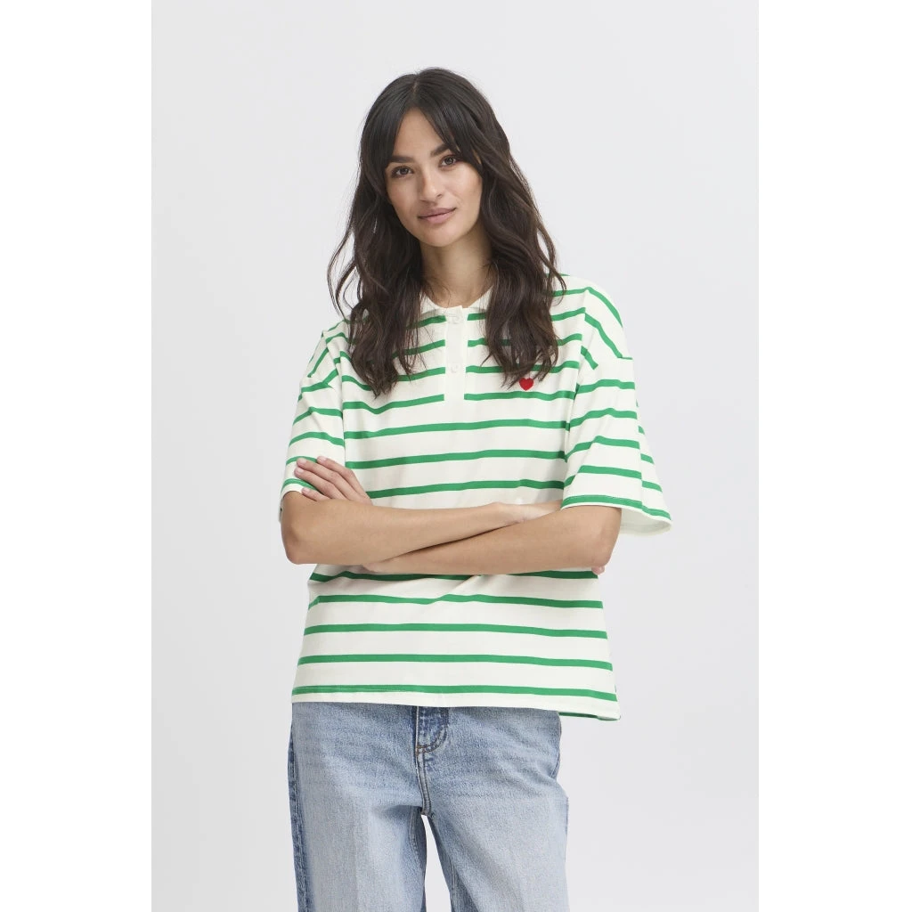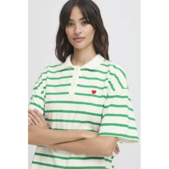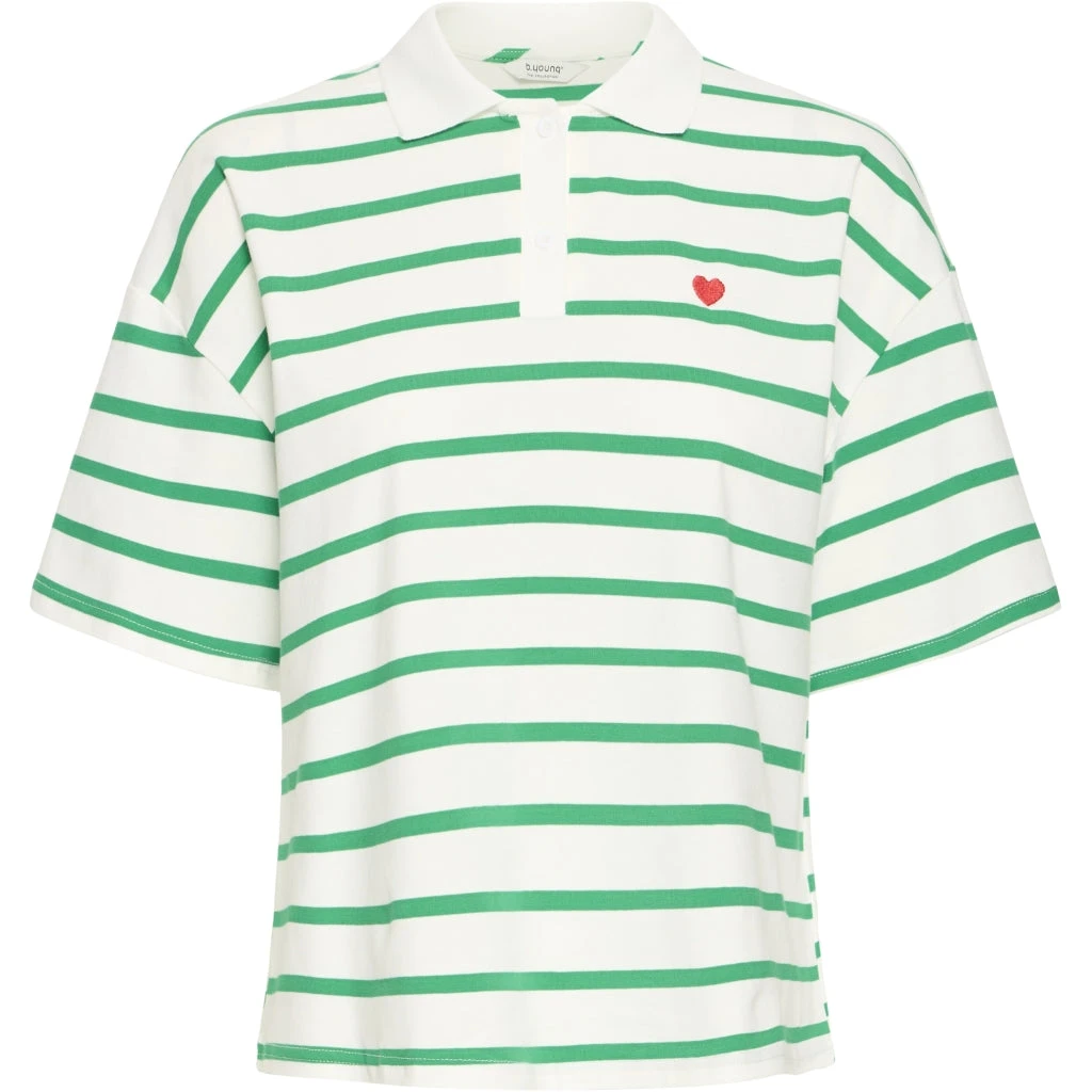 Klassisk polo t-shirt fra B.young. Poloen har en klassisk krave, sofistikerede knapper og et enkelt hjertemotiv. Super cool til jeans og sneakers som et casual hverdagslook.