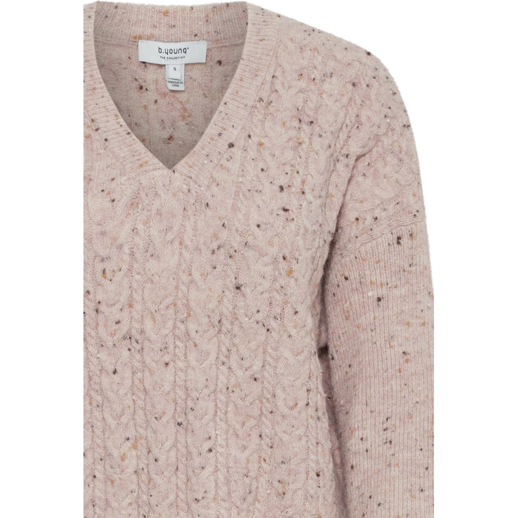 Lækker striktrøje fra b.young med v-hals. Strikken har et sejt mønster og kan bruges til både jeans og habitbukser. Ideel til hverdagsbrug.