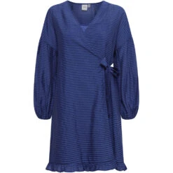 Smuk ICHI kjole med bindbånd i siden samt ballon ærmer.