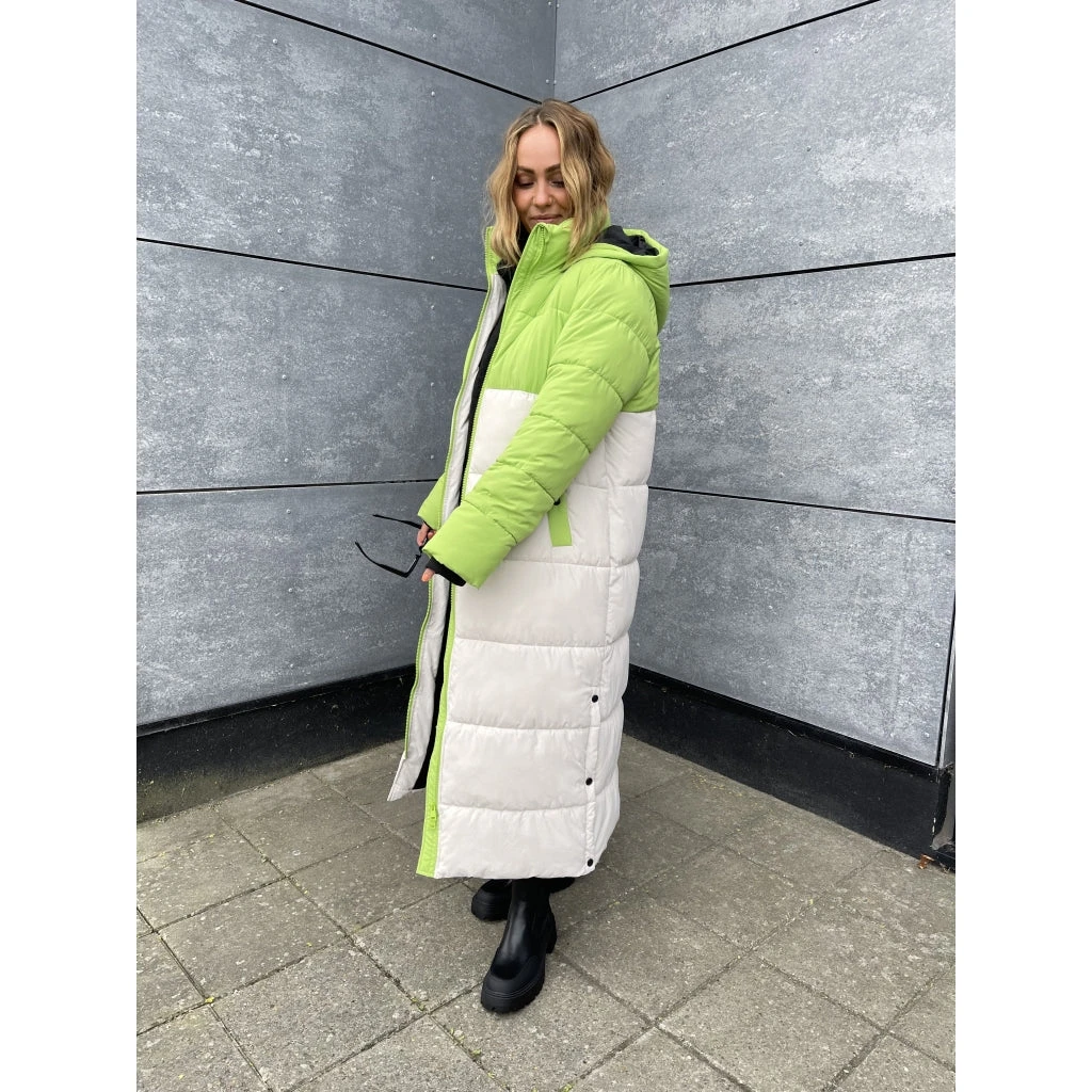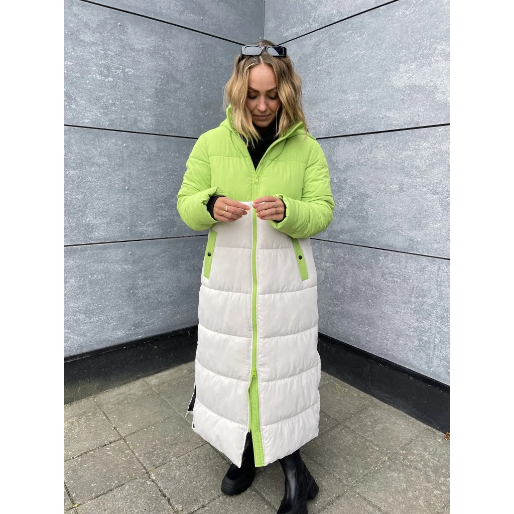 Cool extra lang jakke i dejlig blød og let kvalitet. Jakken har lommer med knapper, dobbelt lynlås og ribbet vindfang ved ærmer. Desuden har jakken knapper i hver side forneden, så den er til at cykle i.