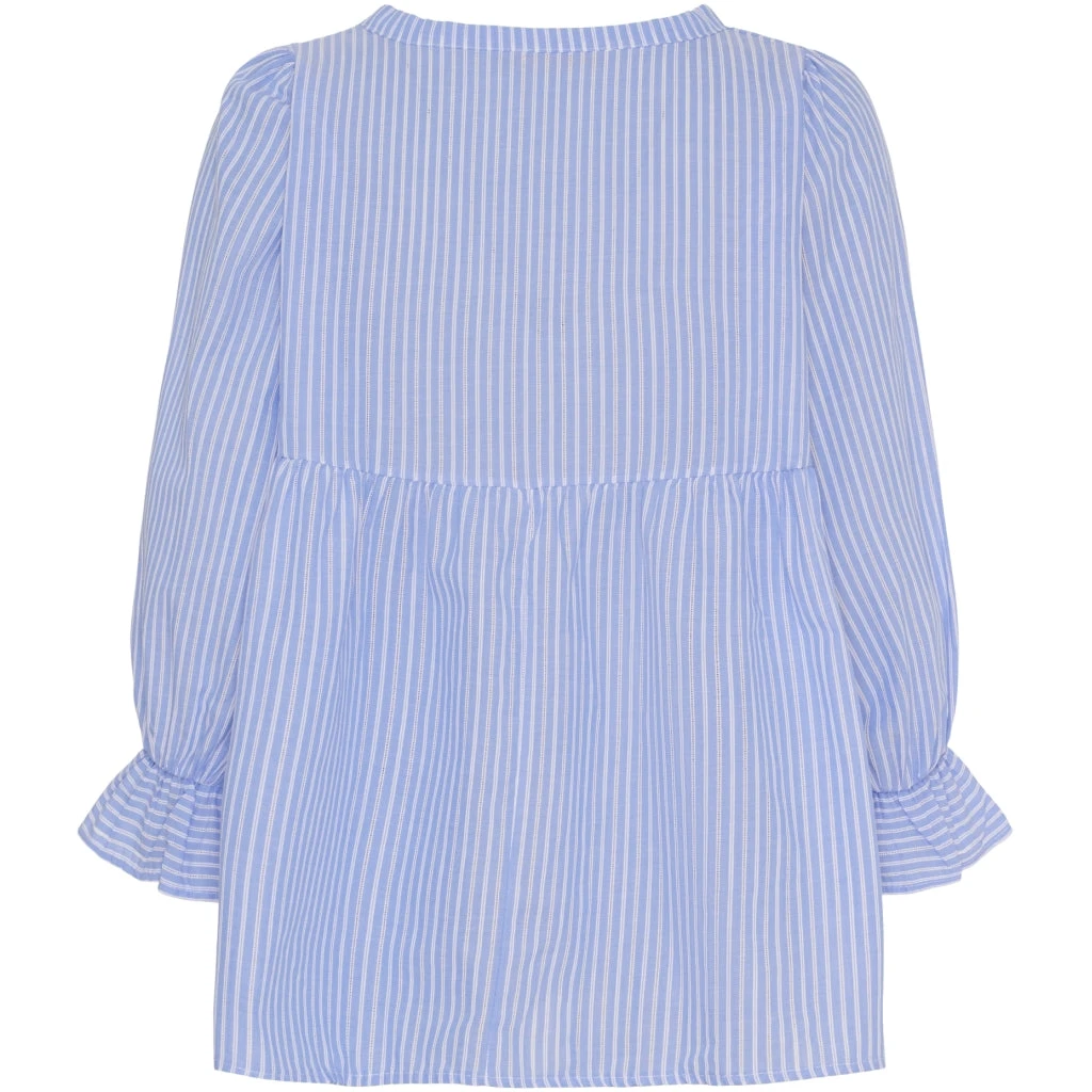 Super smuk stribet bluse med flæsedetaljer fra Marta Du Château. Blusen har fine knapdetaljer og kan både styles til hverdag og finere brug. Til hverdag, style den med jeans og sneakers. Til fest, style den med en nederdel og ballerinaer.