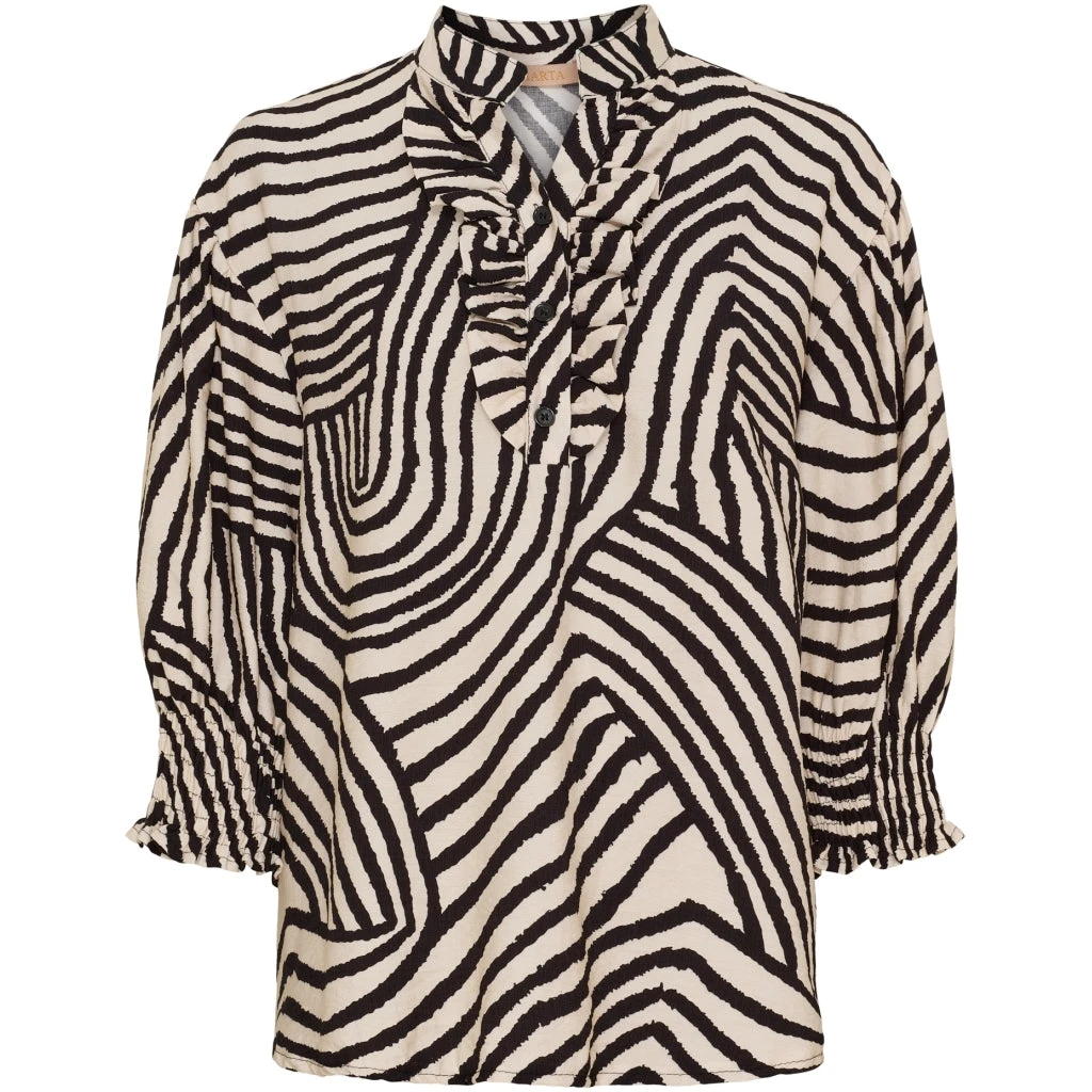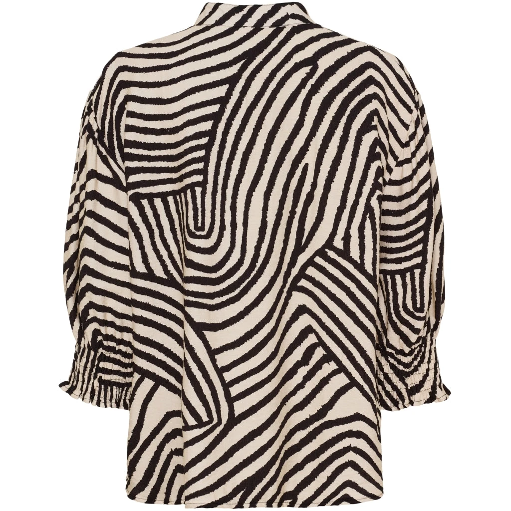 Femin og elegant bluse fra Marta Du Château. Blusen har v-hals, smock ved ærmerne og en enkel flæsedetalje langs halsen. Style den med matchende bukser fra samme serie for et fint sammenhængende look.
