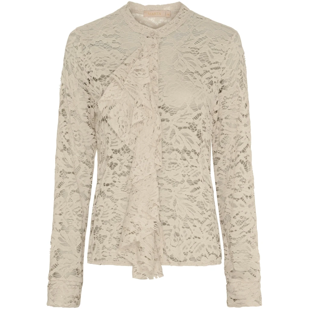 Smuk og feminin blondebluse fra Marta Du Château med et fint blondemønster. Perfekt til både hverdag og festlige lejligheder. Style den afslappet med jeans eller kombiner den med en nederdel for et mere fint look.