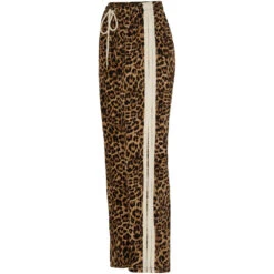 Smarte sweatpants med leoprint fra Marta du Château. Bukserne har lyse kontraststriber langs siderne og er elastiske i taljen.