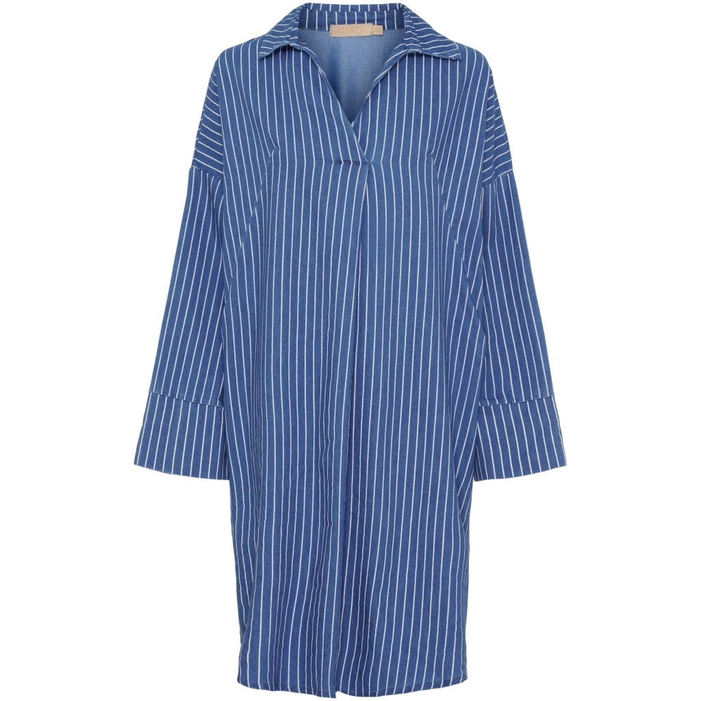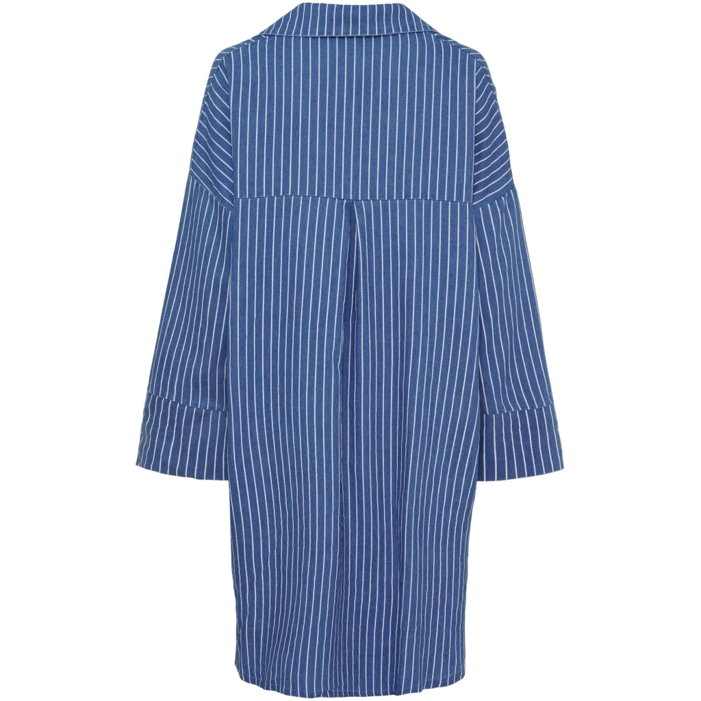 Smuk stribet kjole fra Marta Du Château i en løs pasform, der gør den super komfortabel at have på. Kjolen har en fin udskæring ved halsen, og den kan både bruges alene på en varm sommerdag eller med leggings under.