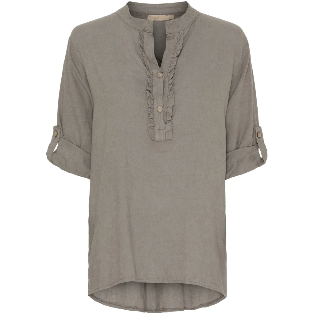 Sød hør bluse fra Marta Du Cháteau med knapper foran samt flæse detalje.