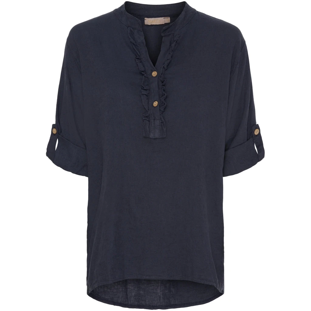 Sød hør bluse fra Marta Du Cháteau med knapper foran samt flæse detalje.
