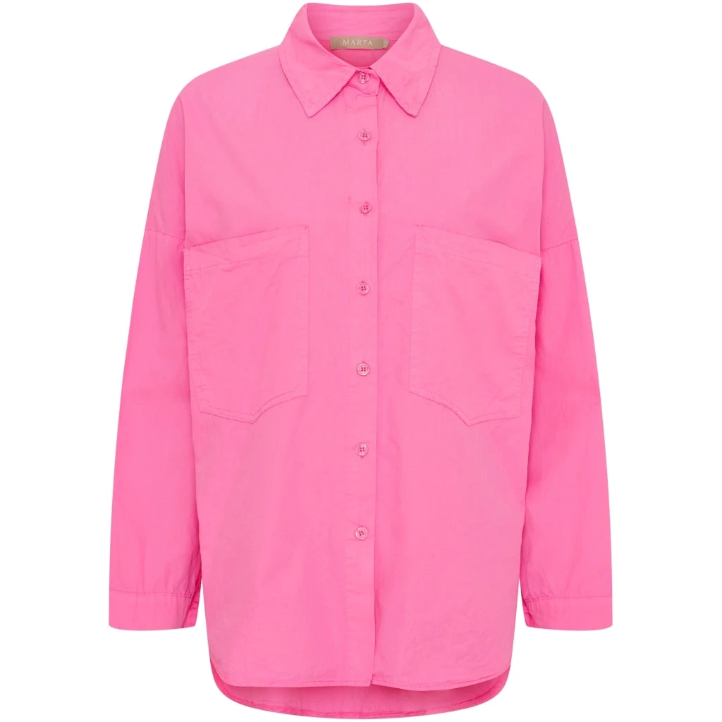 Klassisk skjorte med afrundet kant forneden fra Marta. Skjorten har brystlommer og er ideel til hverdagsbrug med jeans og sneakers. Til finere brug, style den med en nederdel og blazer.