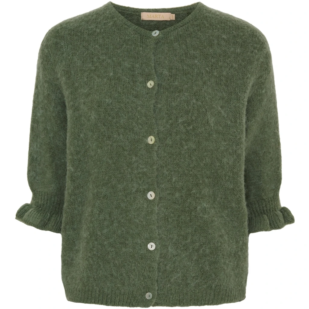 Sød strikket cardigan fra Marta med flæsedetaljer ved håndleddene. Cardiganen har fine knapper langs fronten og er perfekt til hverdagsbrug. Style den med både jeans, habitbukser og nederdele – mulighederne er mange.