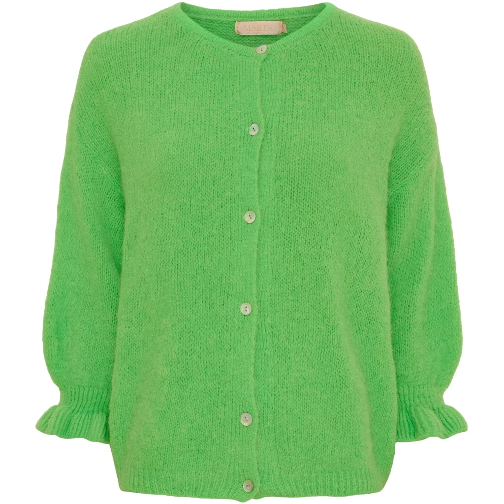 Sød strikket cardigan fra Marta med flæsedetaljer ved håndleddene. Cardiganen har fine knapper langs fronten og er perfekt til hverdagsbrug. Style den med både jeans, habitbukser og nederdele – mulighederne er mange.