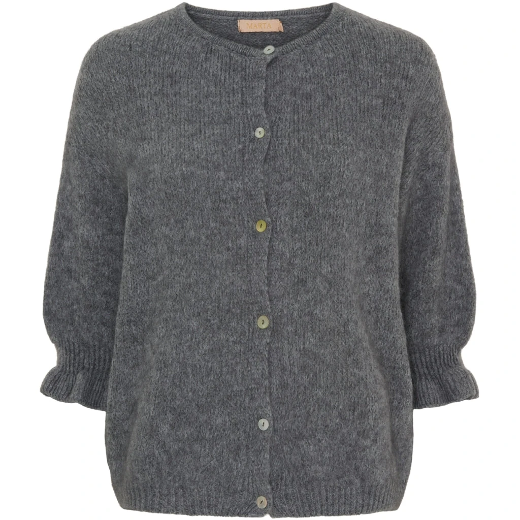 Sød strikket cardigan fra Marta med flæsedetaljer ved håndleddene. Cardiganen har fine knapper langs fronten og er perfekt til hverdagsbrug. Style den med både jeans, habitbukser og nederdele – mulighederne er mange.