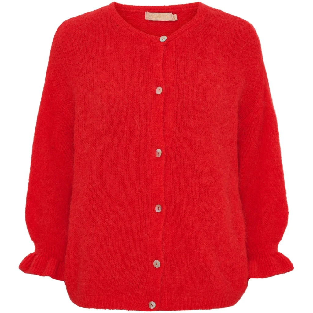 Sød strikket cardigan fra Marta med flæsedetaljer ved håndleddene. Cardiganen har fine knapper langs fronten og er perfekt til hverdagsbrug. Style den med både jeans, habitbukser og nederdele – mulighederne er mange.