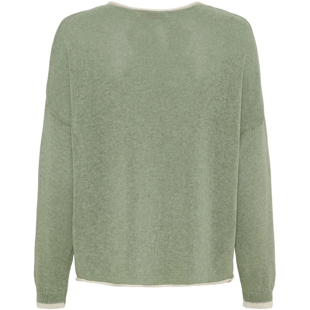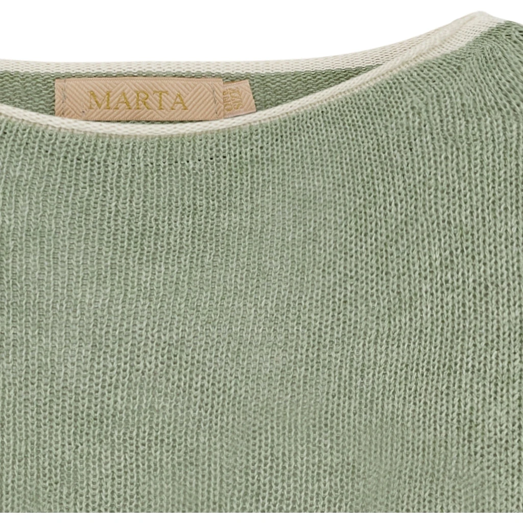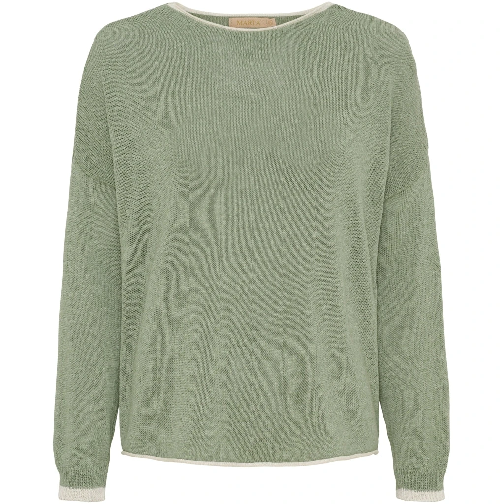 Cool strik fra Marta Du Château med kontrastfarvede syninger langs halsen, bunden og kanten. Ideel til hverdagsbrug med et par jeans og sneakers.