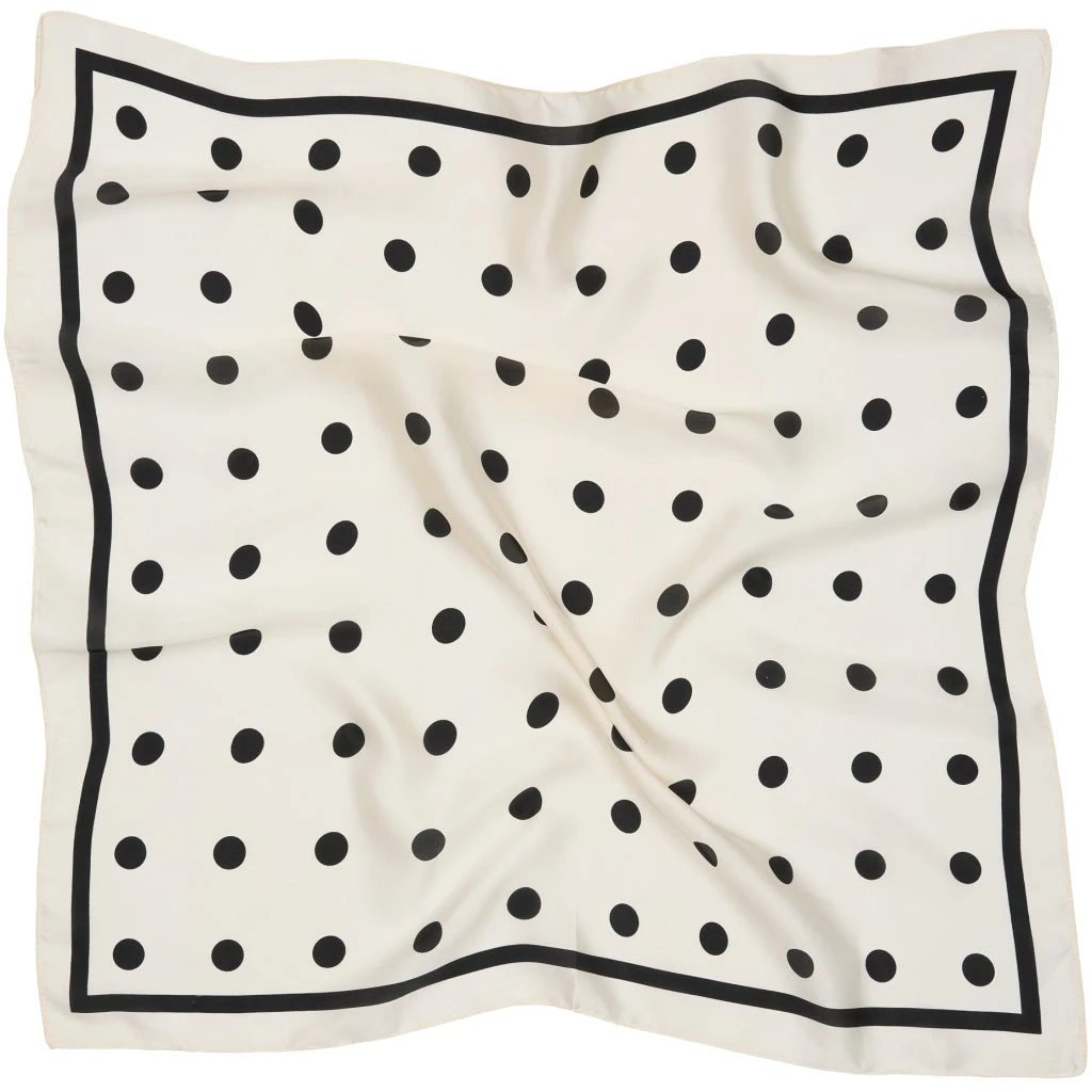Elegant tørklæde med et moderne mønster. Ideelt til at pifte ethvert outfit op, uanset om det bruges om halsen, som hårpynt eller på tasken. En uundværlig accessory i garderoben efter vores mening.