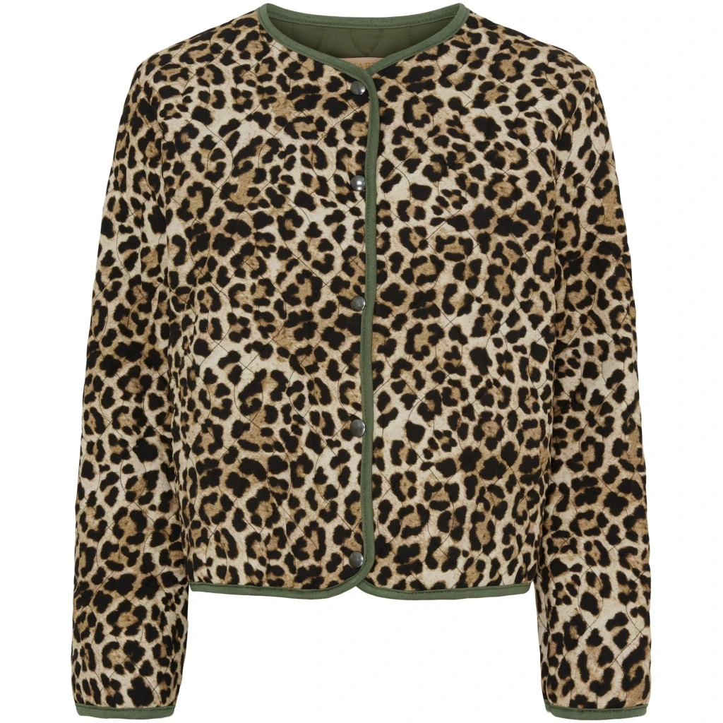 Sød leojakke med lyserøde syninger fra Marta. Jakken har fine sofistikerede knapper og er meget let i materialet. Fungerer fint som en let overgangsjakke her til foråret med en tyk trøje under.