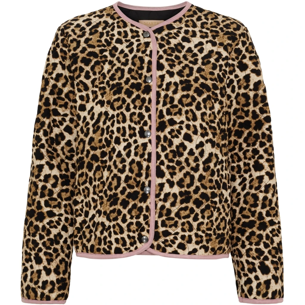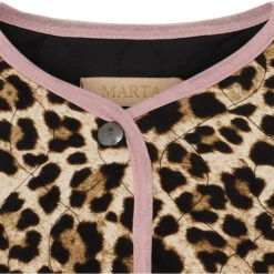 Sød leojakke med lyserøde syninger fra Marta. Jakken har fine sofistikerede knapper og er meget let i materialet. Fungerer fint som en let overgangsjakke her til foråret med en tyk trøje under.