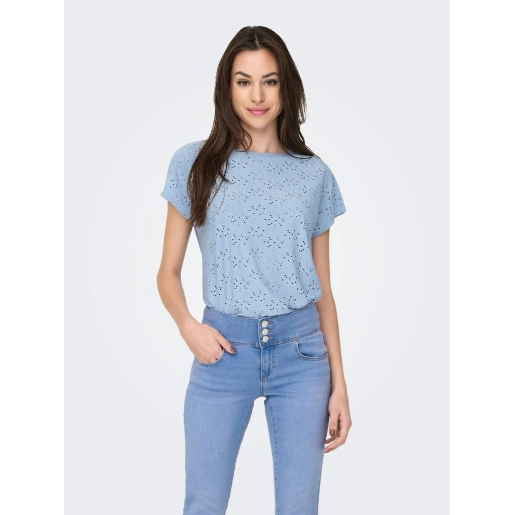Fineste t-shirt med feminine detaljer fra Only. T-shirten er en smule længere bagtil end foran, hvilket giver en super sej effekt. Brug den både til jeans, habitbukser og nederdele – mulighederne er mange.