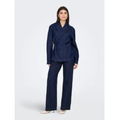 Fedeste denimjakke fra Only med de sejeste detaljer. Jakken har et fint bindebånd i den ene side, og den kan bruges for sig selv eller med en top under. Style den med jeans i samme vask for et komplet, cool denim-on-denim outfit.