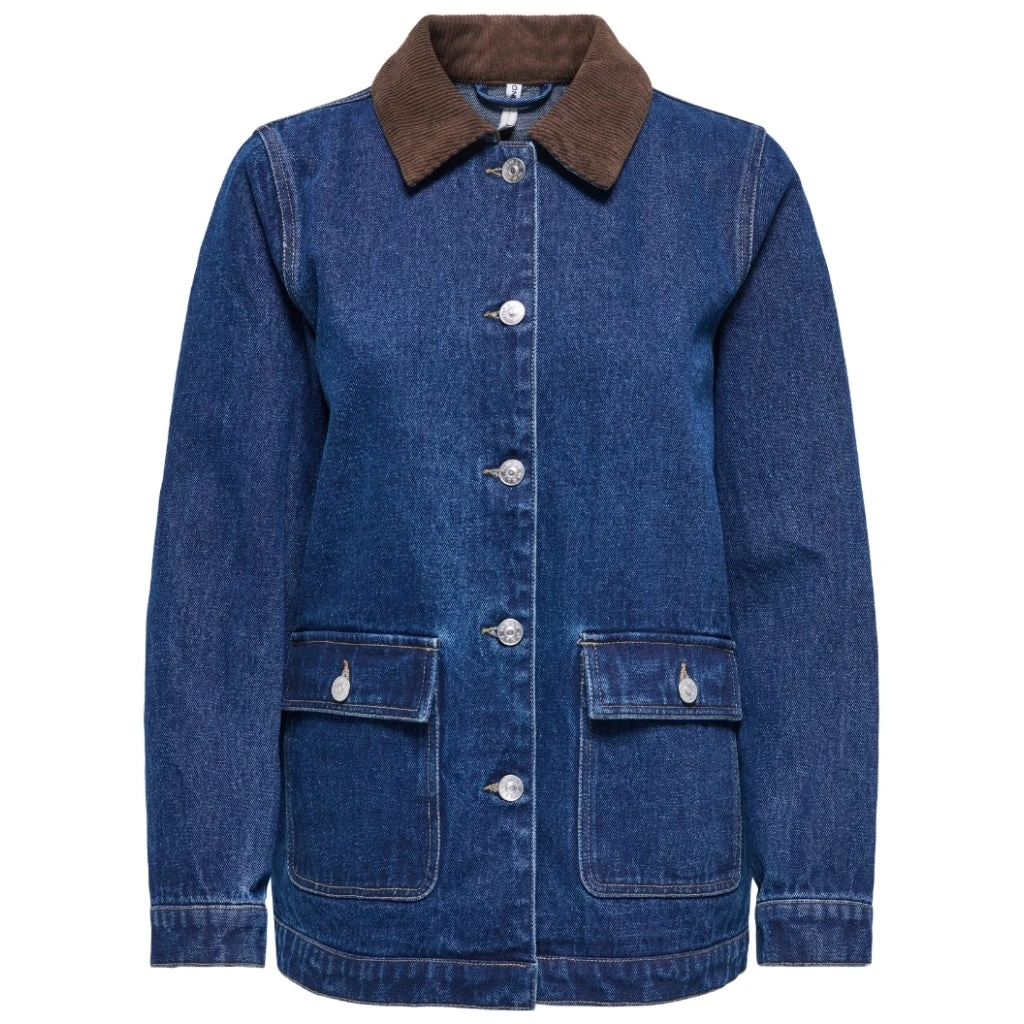 Fedeste denim jakke fra Only med lommer, knaplukning og en sej, anderledes krave. Der er plads til en tyk, varm strik under på de kolde dage, og den er perfekt til foråret der er over os.