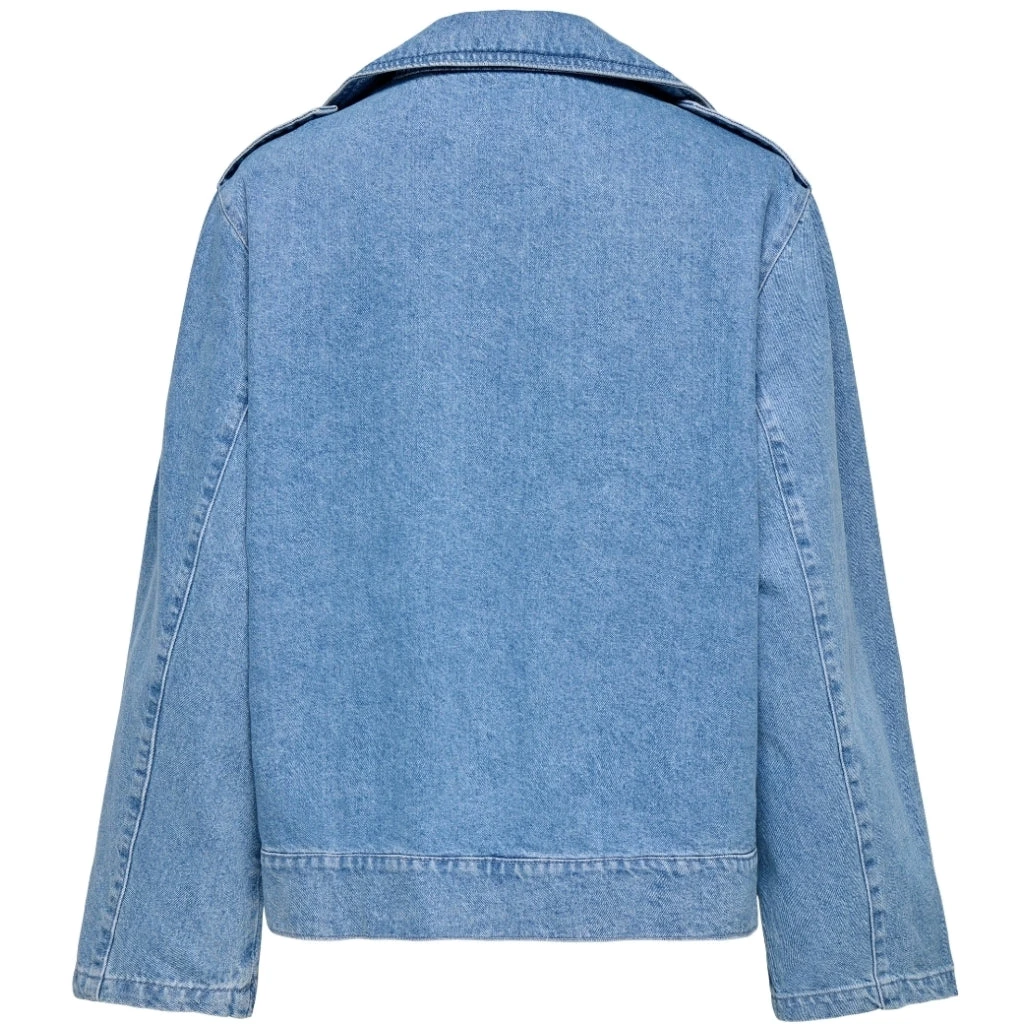 Super cool oversized denimjakke fra Only. Jakken har et trendy, råt look med asymmetrisk lynlås og sølvknapdetaljer, og kan styles med jeans for et fuldt denim-on-denim look.