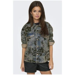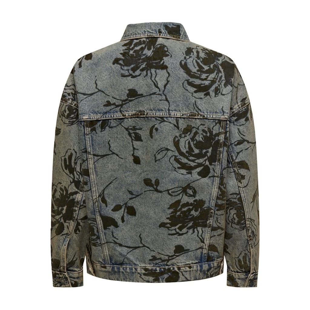 Sej denimjakke med roser fra Only. Jakken har brystlommer og knapper langs fronten og kan styles med jeans fra samme serie.