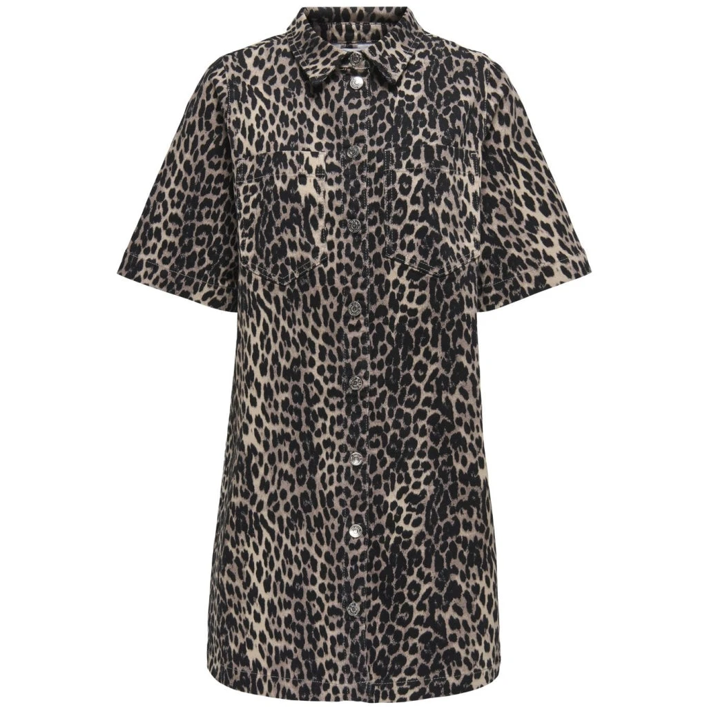 Smart gennemknappet kjole fra Only i leopard i regular fit. Kjolens design er enkelt, men udtryksfuldt, hvilket gør den velegnet til både dag- og aftenarrangementer.