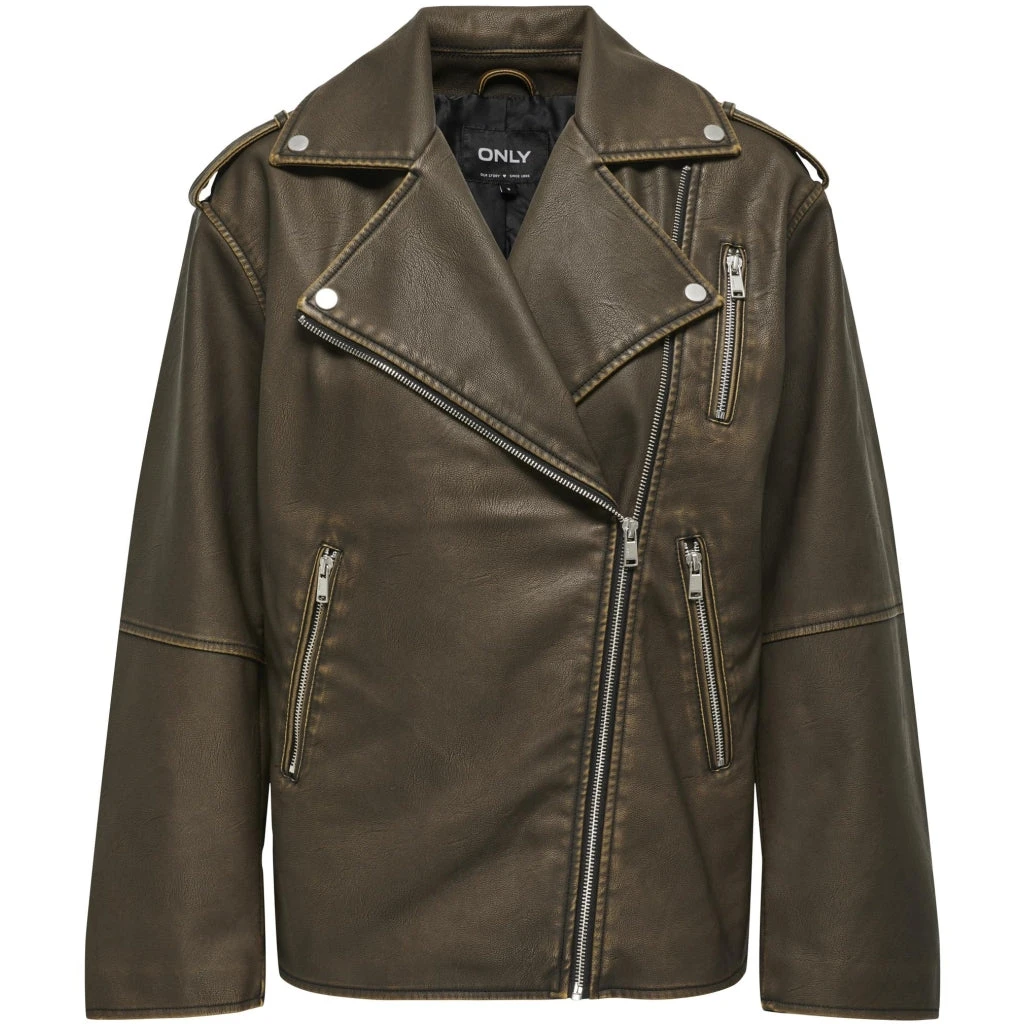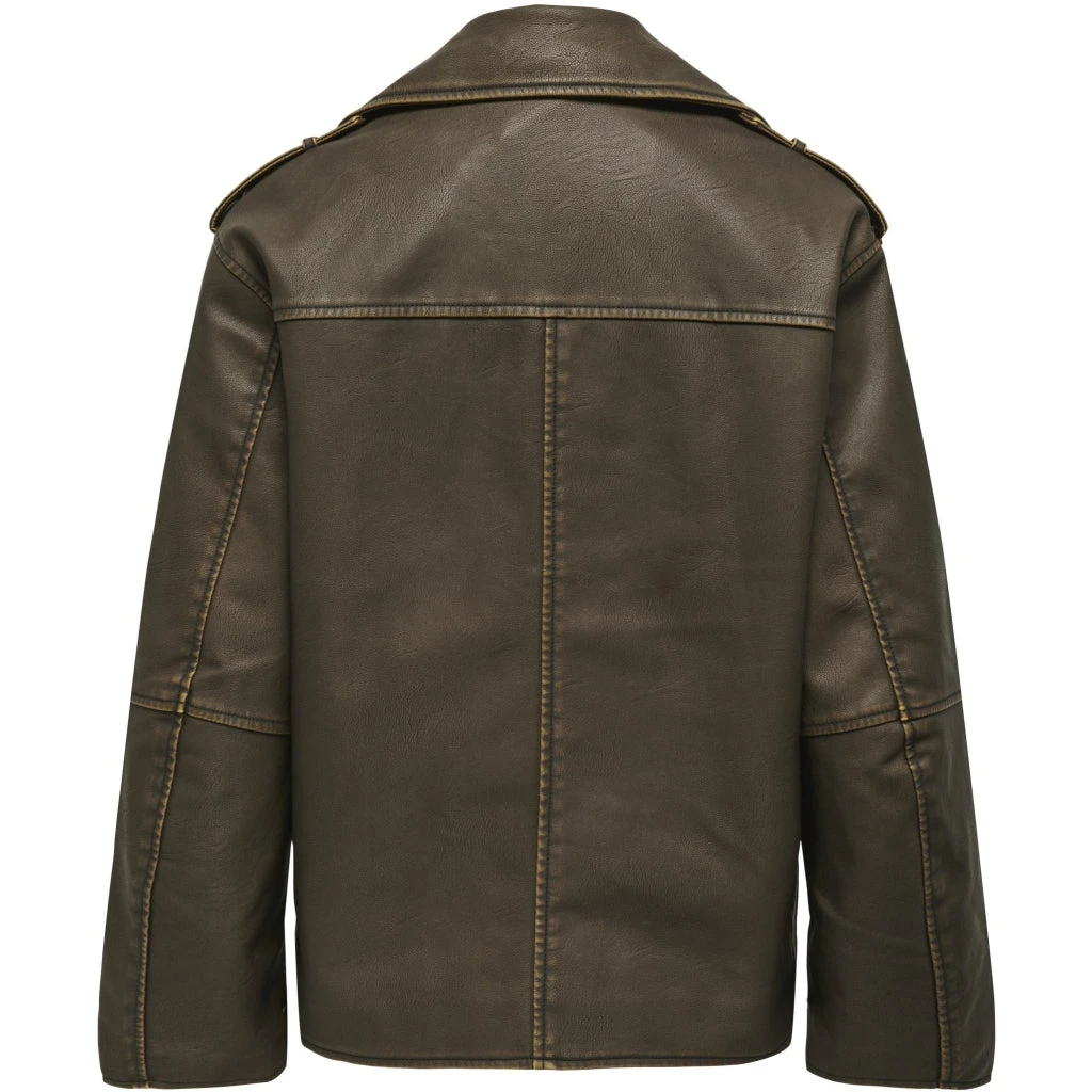 Virkelig cool oversize faux læderjakke fra Only i biker stil. Farven changere ved syningerne.