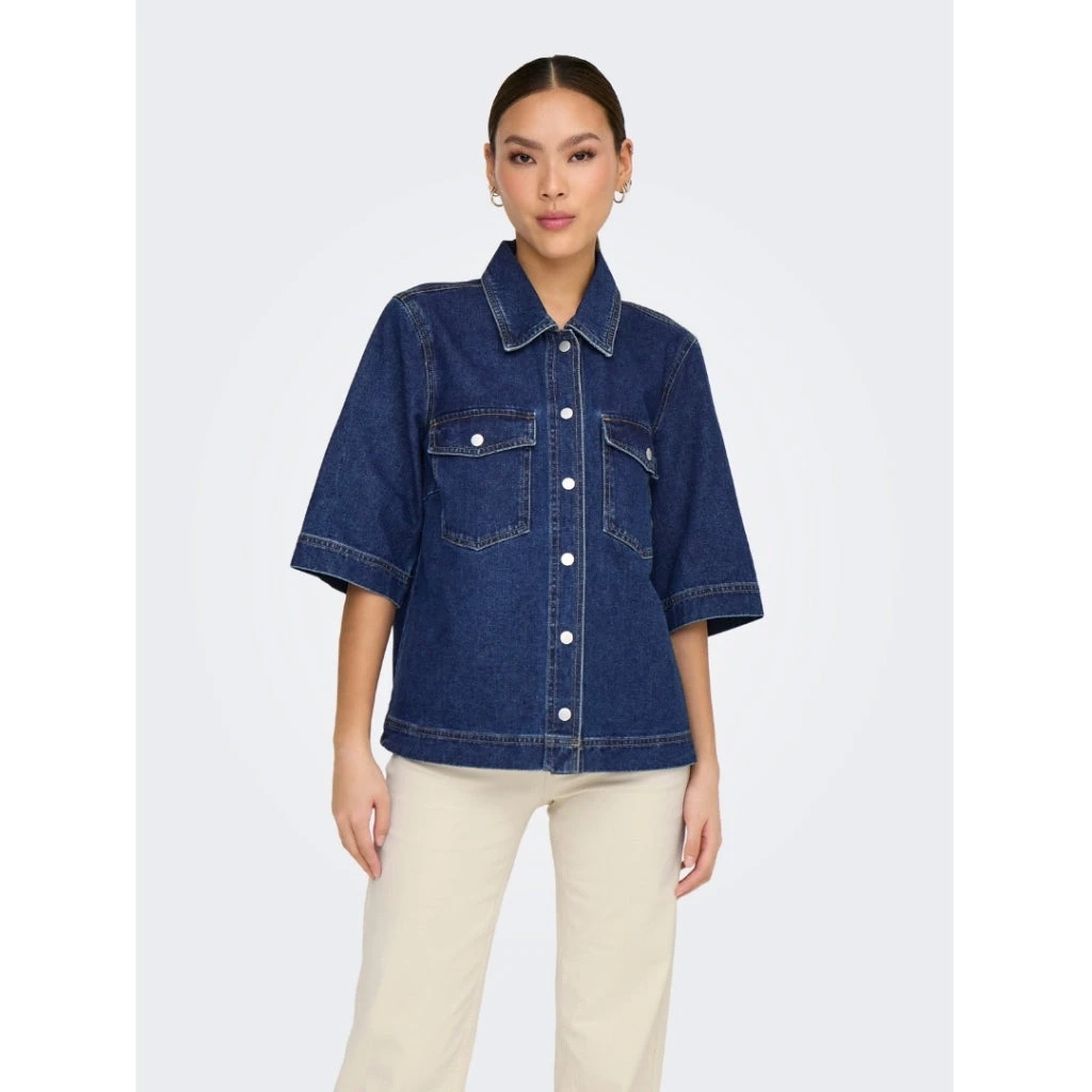 Super cool denimskjorte fra Only med sidelommer og knapper langs fronten. Ideel til både hverdag og finere brug. Style den med jeans i samme vask for et komplet denim-on-denim look.