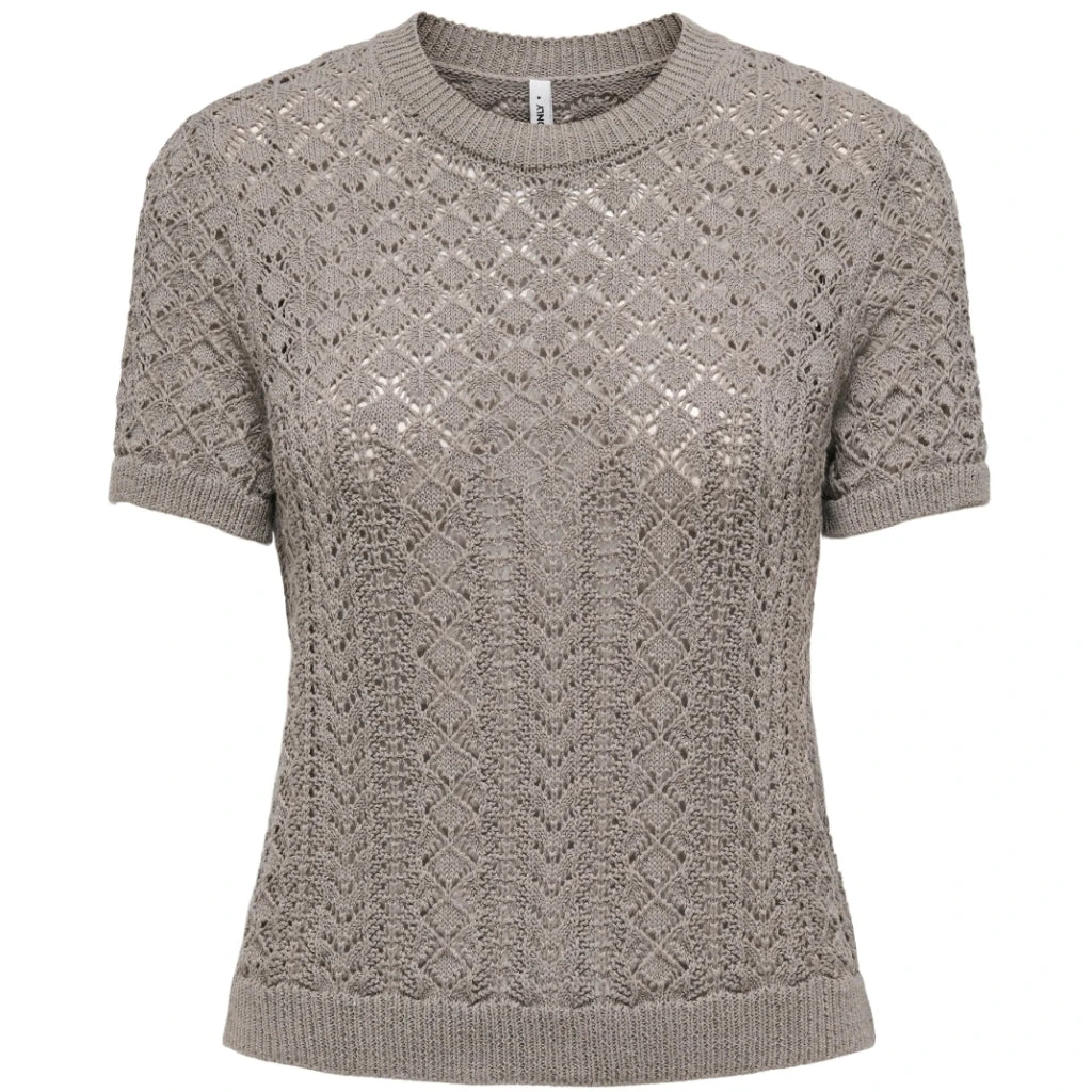 Smuk strik t-shirt fra Only med hulmønster, der gør at den et let gennemsigtig. Style den derfor evt. med en basis top under. Den er super fin og feminin, og kan både bruges til jeans og nederdele.