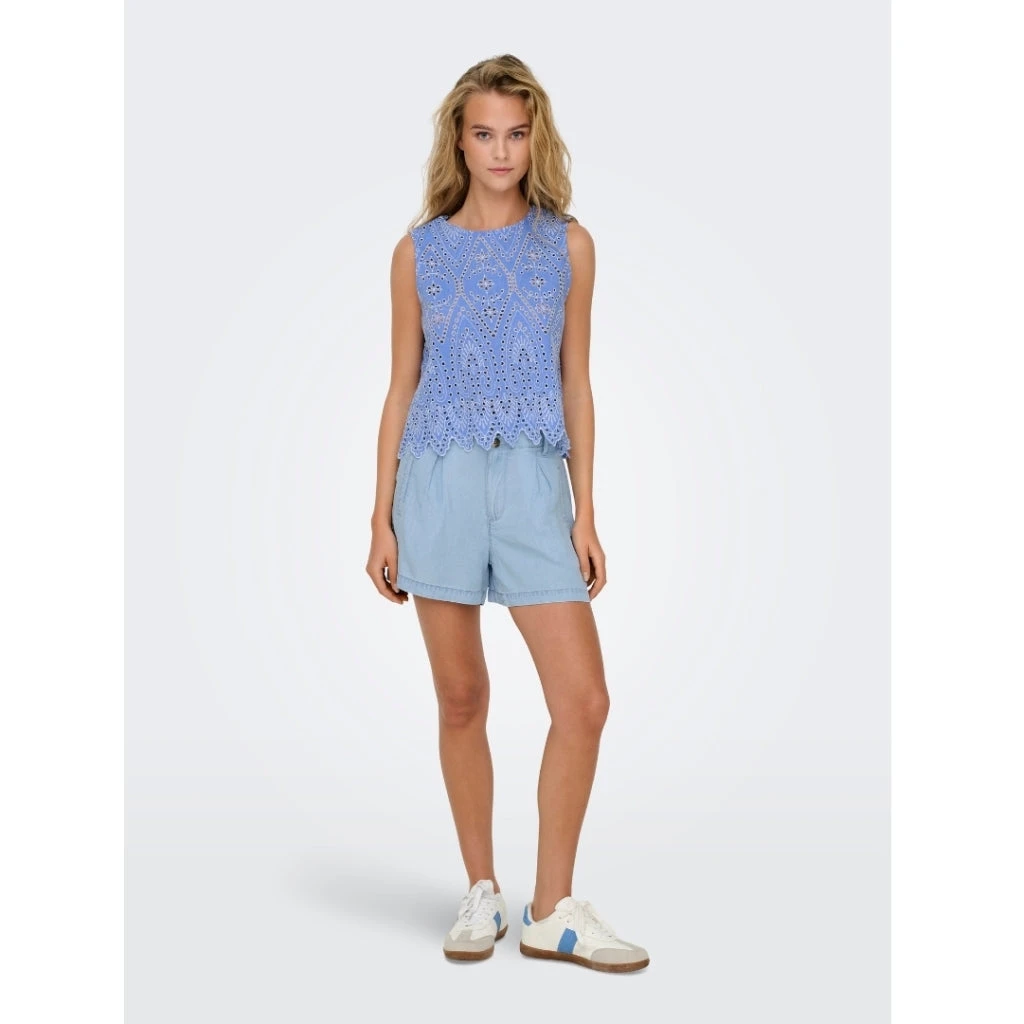 Gå sommeren i møde med denne fine top med hulmønster fra Only. Den er super feminin og elegant, og kan både bruges til shorts, nederdele og jeans.