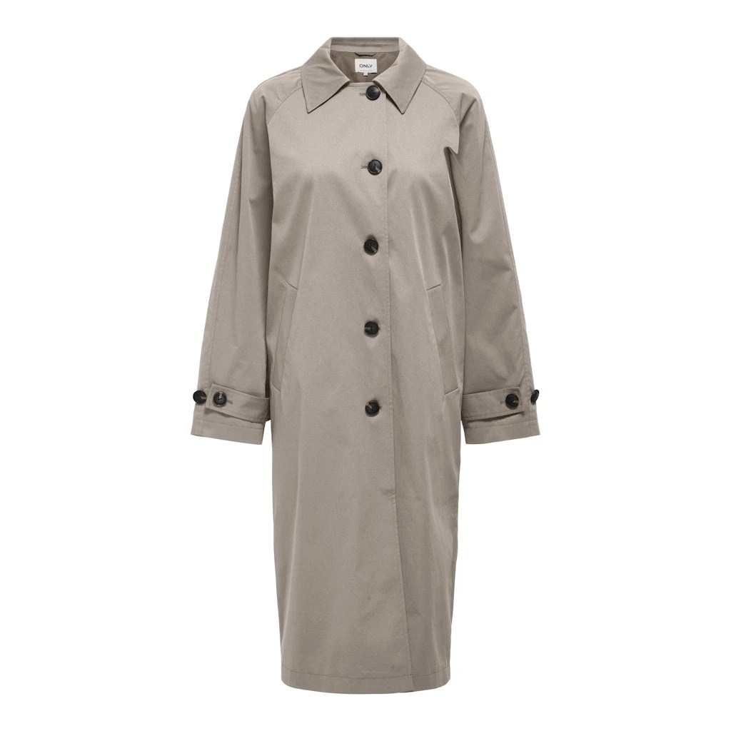 Super cool trenchcoat fra Only. Jakken har en klassisk krave og knapper langs fronten. Den er tidløs og kan både bruges til forår og efterår, og kan både dresses op og ned.