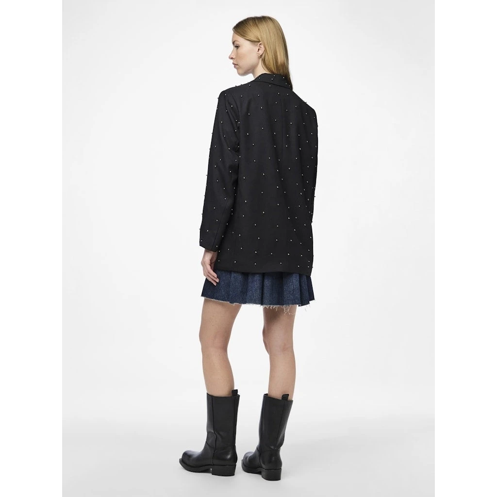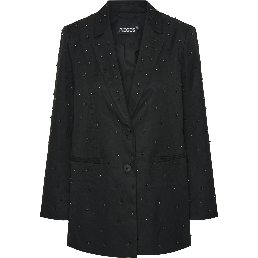 Smart blazer med sorte perler fra Pieces. Blazeren er super festlig og kan styles med bukserne fra samme serie for et komplet, cool look.