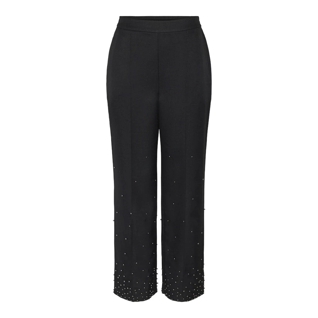 Super smarte bukser med perler forneden fra Pieces. Bukserne er festlige og kan fint styles med en blazer og stiletter til.