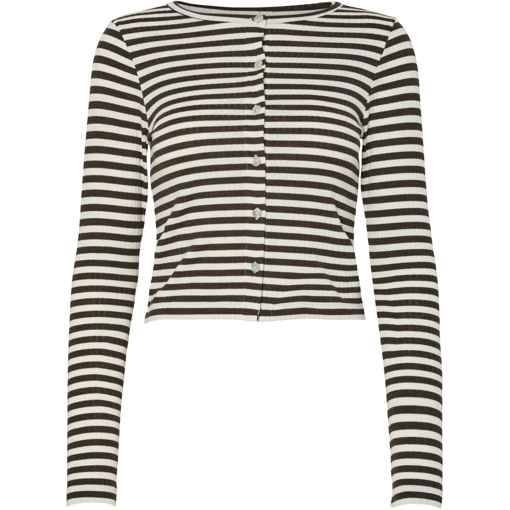 Fineste cardigan fra Pieces med striber og knaplukning. Brug den alene eller med matchende bukser fra samme serie. Ideelt til både hverdag med sneakers eller til weekenden med et par hjemmesko.