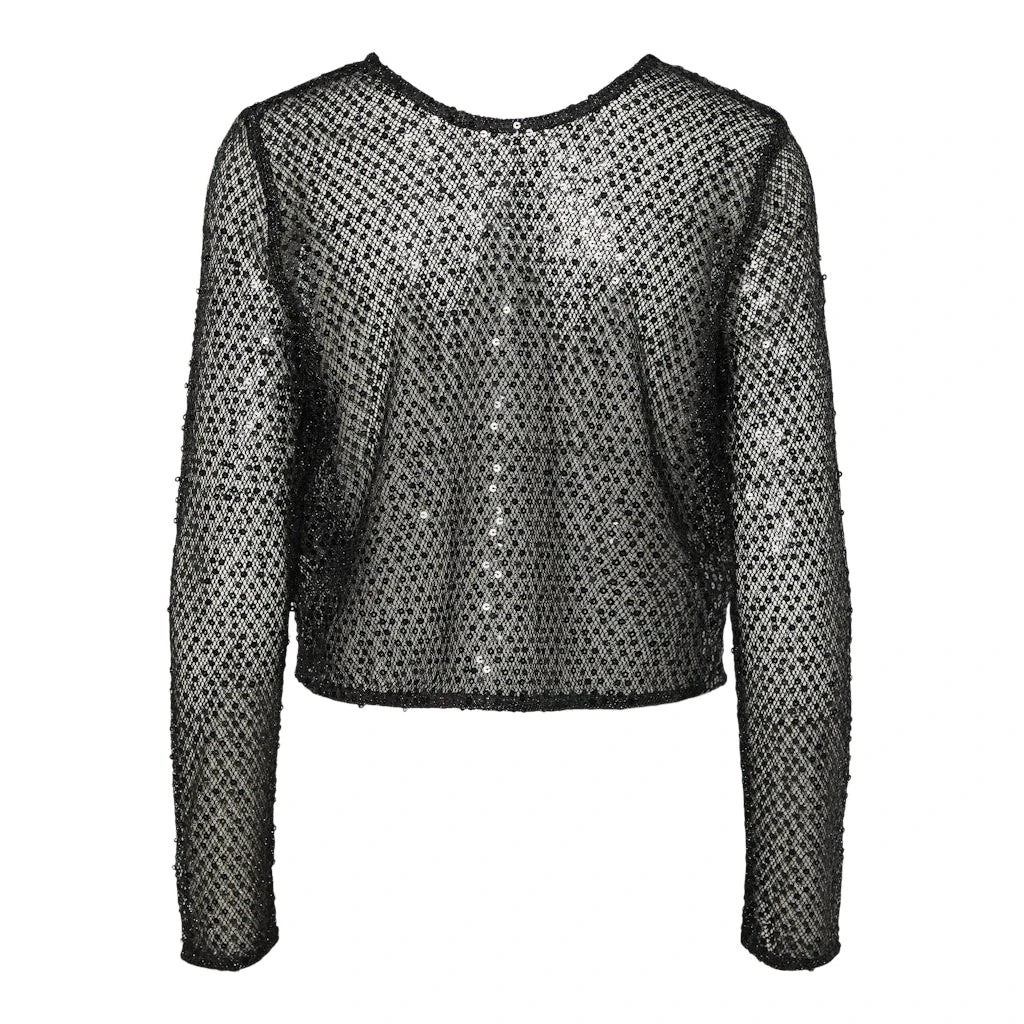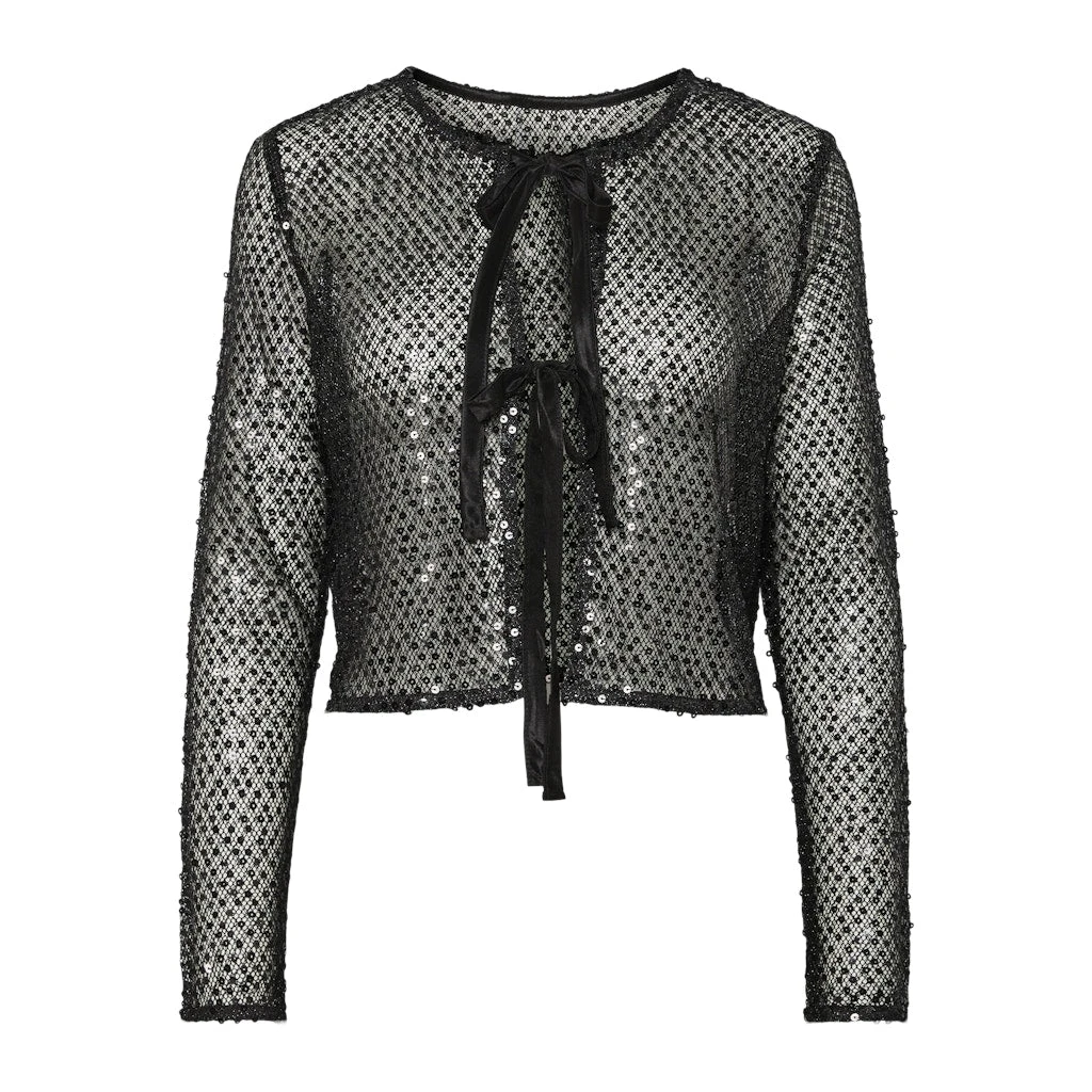 Sej cardigan med pailetter og bindebånd fra Pieces. Kan styles med en basis top eller langærmet under.