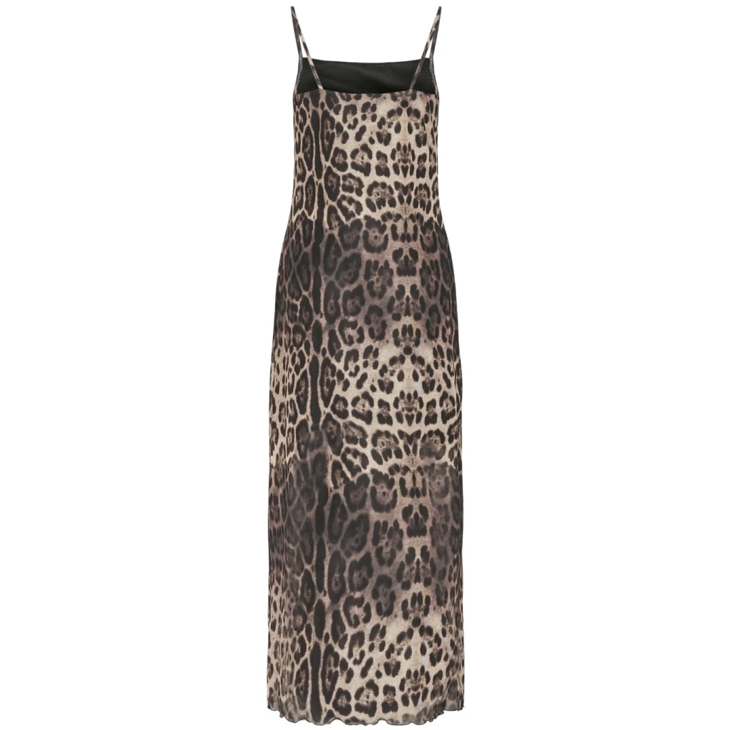 Smuk leopardkjole fra Pieces med spagettistropper. Kjolen er tætsiddende men har godt med stræk i sig. Ideel til en festlig begivenhed med et par stiletter og en fin taske.