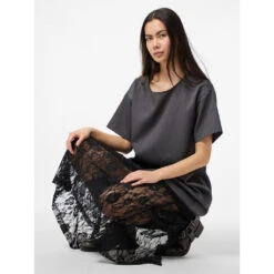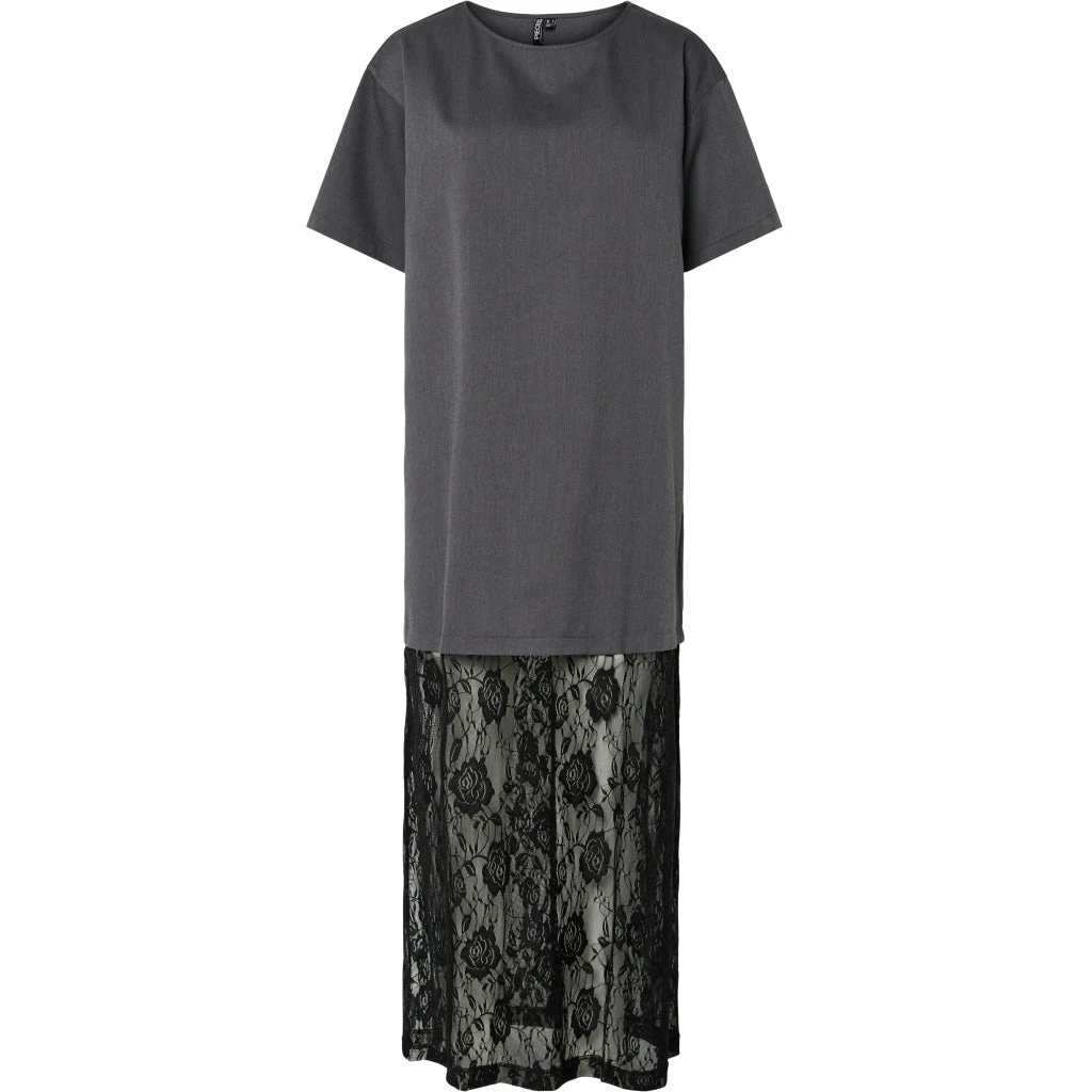 PIECES Dame Kjole PCALICE – Medium Grey Melange Black Lace