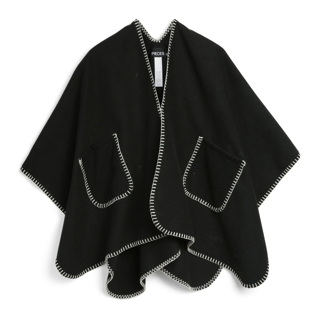 Lækker poncho med sidelommer fra Pieces. Ponchoen har hvide kontrastsyninger og kan sammensættes med hvad end man har i klædeskabet.