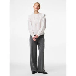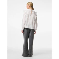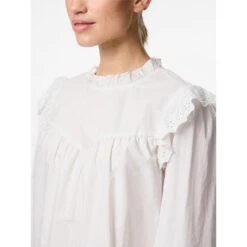 Denne søde blondebluse med krave har et feminint og stilfuldt design, der gør den ideel til festlige begivenheder. De fine blondedetaljer og den lette pasform gør den både stilfuld og behagelig.