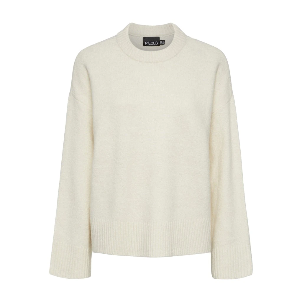 Lækker blød striktrøje fra Pieces. Strikken er normal i størrelsen, men for et mere oversize look bør man tage en størrelse større.