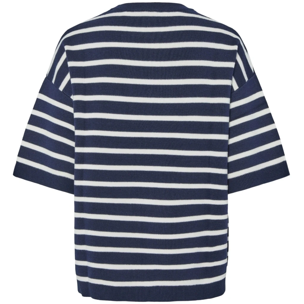 Fineste stribede strik t-shirt fra Pieces. Strikken er super klassisk, og den passer til hvad som helst i klædeskabet. Brug den både til jeans og sneakers eller en nederdel og ballerinaer.