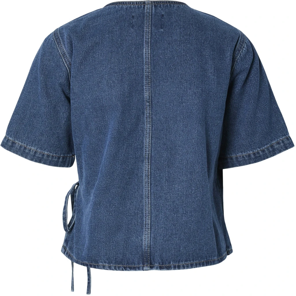 En smuk denim bluse med bindebånds detalje, som giver et flot snit i taljen. Style med denimbukser for et råt look, eller en satinnederdel til fest.