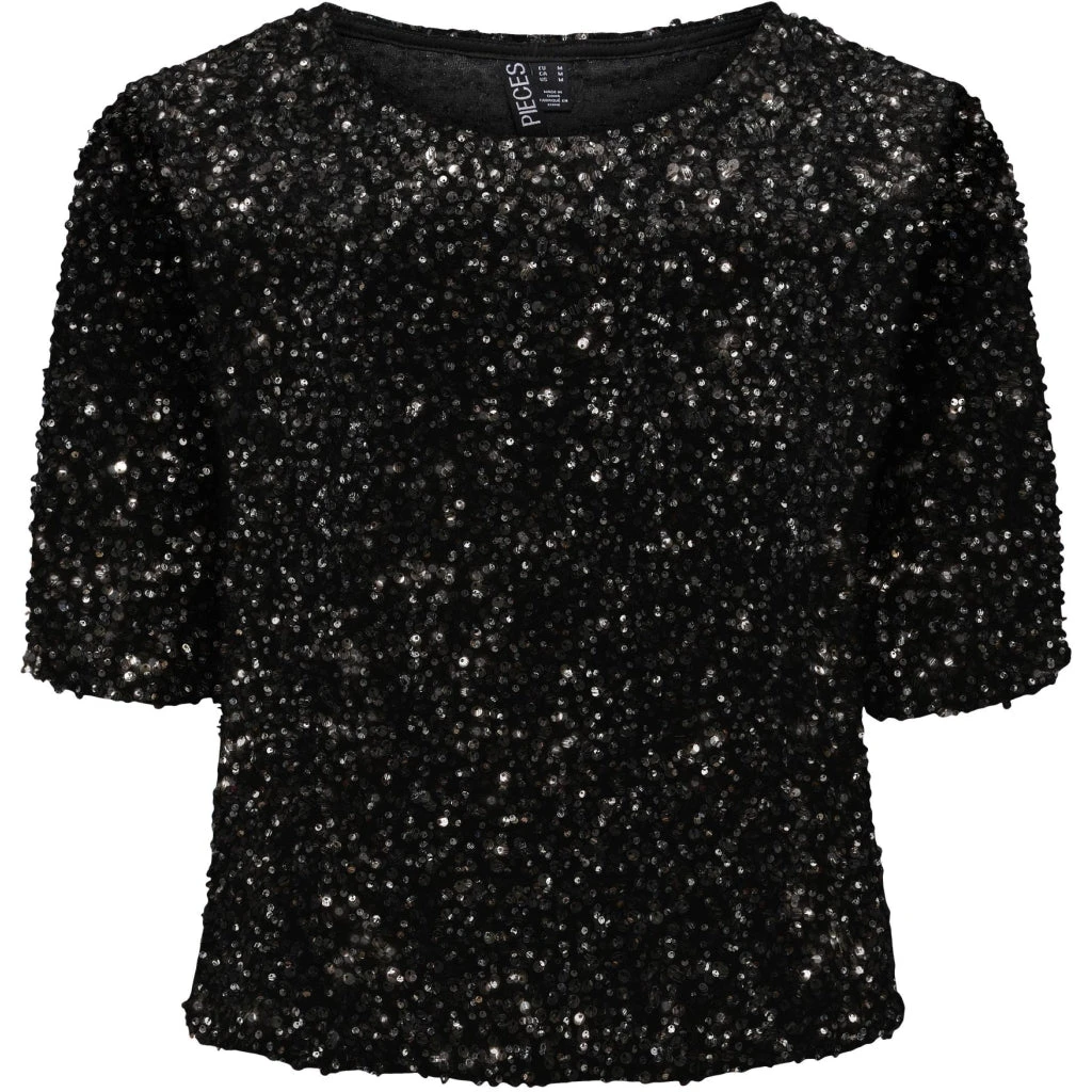 Feminin top fra Pieces med glitter og korte ærmer. Kan styles med matchende glimmerbukser fra samme serie for et komplet glitterlook.
