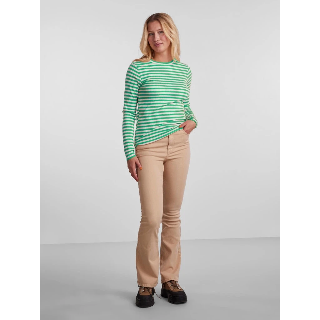 Langærmet bluse fra Pieces med striber i slim fit. Trøjen er lækker blød og tætsiddende, men med masser af stretch.