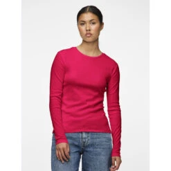 Langærmet bluse fra Pieces med striber i slim fit. Trøjen er lækker blød og tætsiddende, men med masser af stretch.