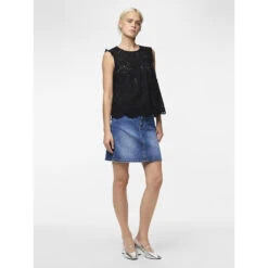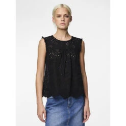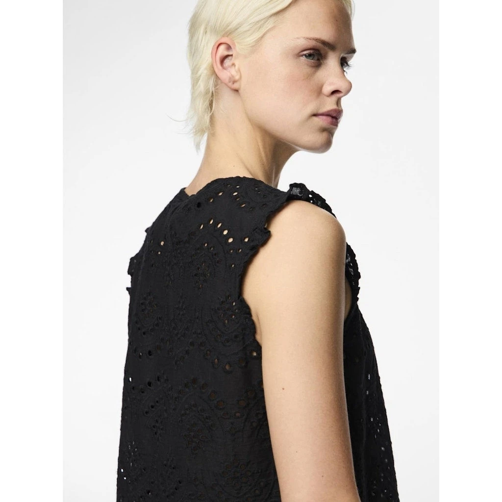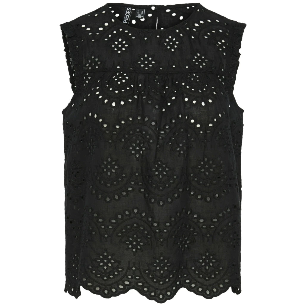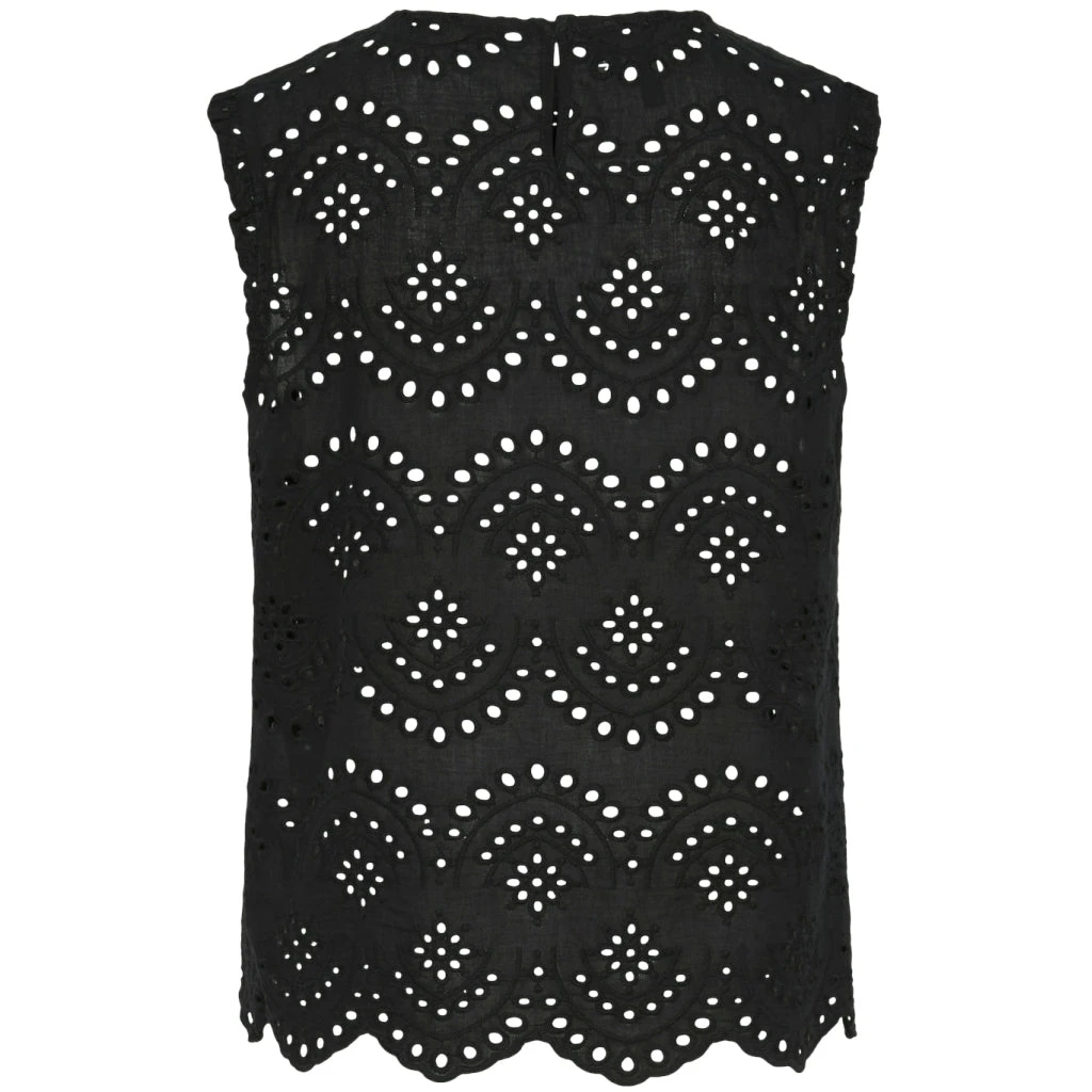 Den ultimative sommerbluse med hulmønster og fine detaljer. Kan bruges med en top under eller alene. Style den med matchende shorts for et fint, sommerligt look.